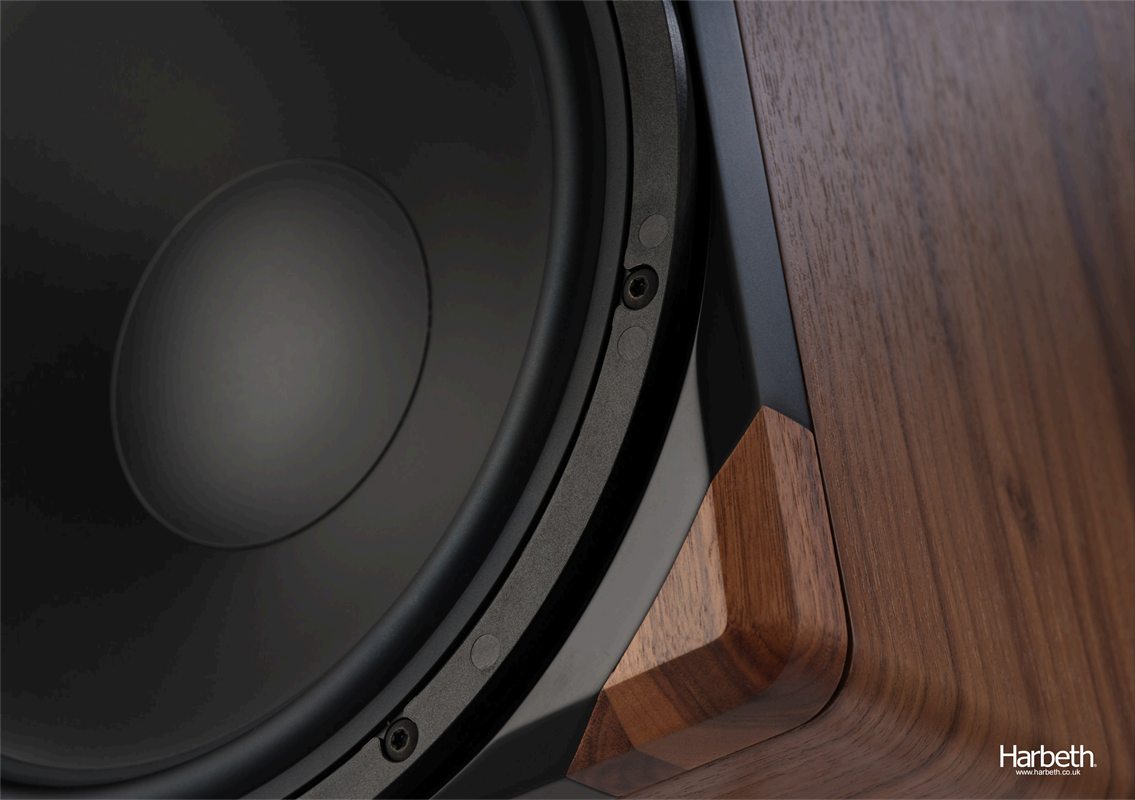 300mm Harbeth 自制低音單元;200mm Harbeth 自制 RADIAL 驅動單元;21mm 鐵液冷卻高音單元