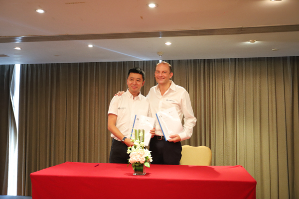 愛威影音總經理王育恒先生和英國劍橋CEO James先生進行品牌代理授權儀式