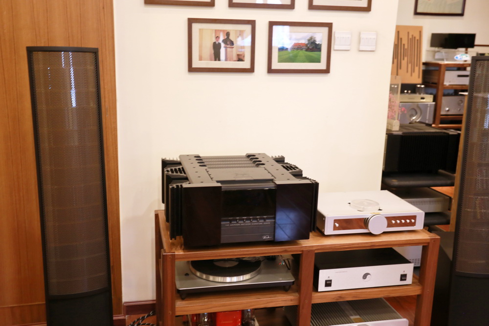 在活動前一天,姚先生和愛威影音的曾銘淵先生就做了充分的準備,根據之前對此次演示的劍橋50周年紀念版的三杰之一的EDGE A合并式放大器的特點了解,進行了大膽的試聽方案的策劃。EDGE A雖然標稱功率是XA類100瓦8歐200瓦4歐,看起來不是太大,原本想配備一對中型落地喇叭來演示。但是姚先生和曾先生卻不約而同的提出了可以嘗試讓EDGE A來驅動Martinlogan的旗艦CLX ART這對超大型揚聲器來作為此次演示會的搭配。原因是,雖然英國功放標稱功率看起來不大,但如果你看看它的參數中實際功耗是1000W!這樣的功放功耗是非常巨大的;很多功放雖然標稱200W每聲道,但實際功耗可能只標注著不到400W,這樣的功放也比比皆是。第二在實際的聽感上,這臺功放所輸出的功率也是十分的充沛,幾乎就是純A類100瓦的力量,由于之前視聽室里用的是貴豐的“鐵甲威龍”,A類150瓦的輸出,所以姚先生是非常熟悉的,當EDGE A 的100瓦XA類上去,其很多部分是相差無幾的,所以姚先生也很想去真正試一下用EDGE A來驅動Martinlogan旗艦CLX ART的設想??!