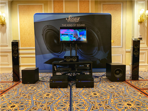 此次SensaSound攜旗下“THX認(rèn)證私人影院”全線產(chǎn)品出展,7.2.4大動態(tài)演示系統(tǒng),聲音張弛有度,宏大聲場即使在100多平方的展房內(nèi)也輕松應(yīng)對。