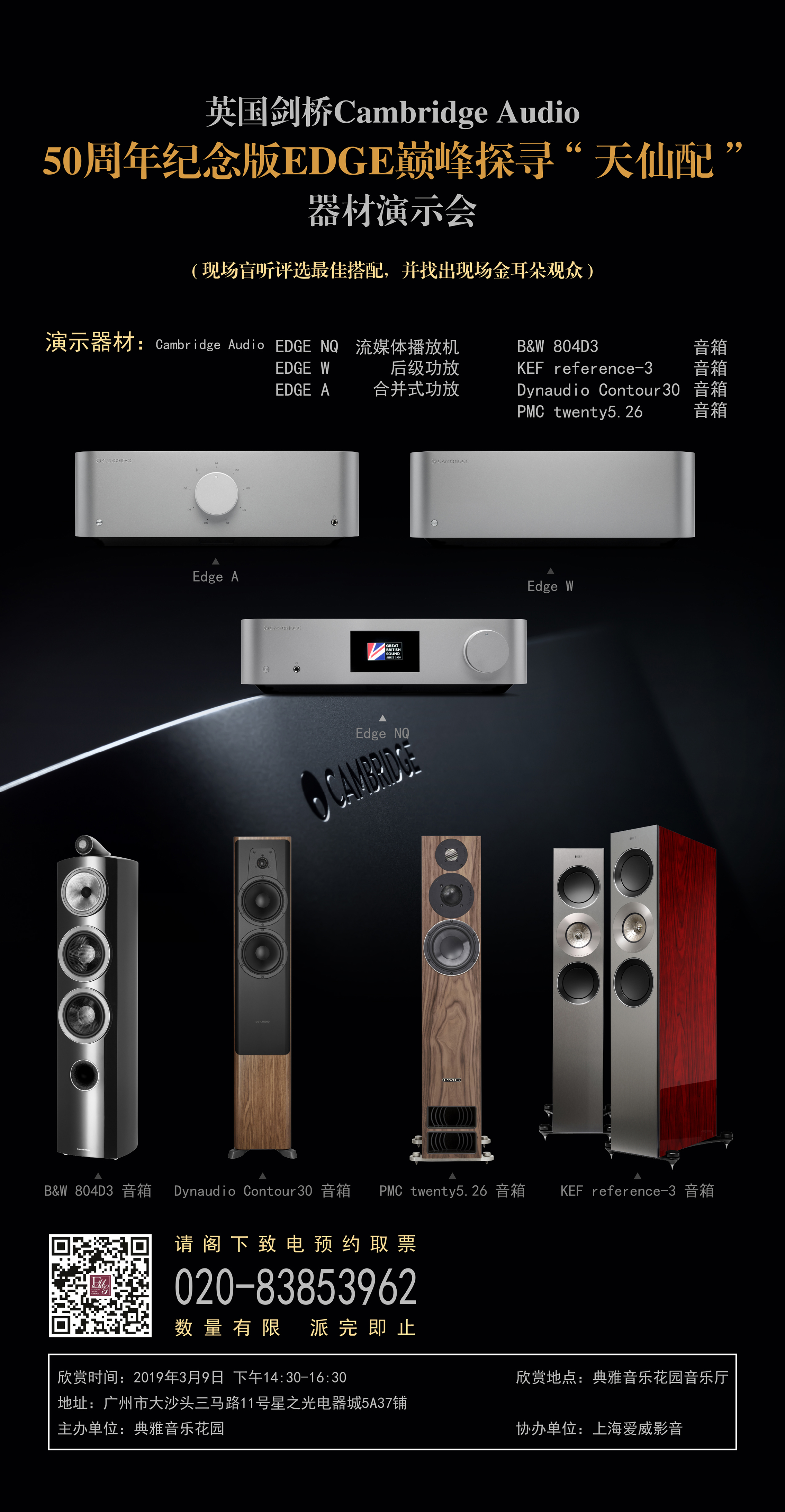 在過完中國農(nóng)歷新年之際,“沉淀英倫50載,綻放中國50城”巡演將繼續(xù),由英國劍橋中國總代理上海愛威影音和廣州總經(jīng)銷廣州典雅音樂花園共同舉行的英國劍橋EDGE巔峰試聽會,將在廣州典雅音樂花園的音樂廳上演。