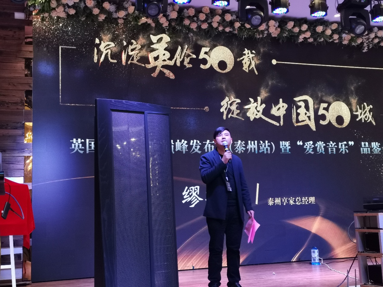 姚紹宏先生稱贊此次活動是泰州影音界有史以來主辦的最大規模的音樂推廣活動,它既是作為一個擁有50年輝煌歷史的音響品牌在泰州市場的發布,同時也是一次高雅音樂的推廣及品鑒活動。希望通過這樣一場別開生面的活動讓更多的音樂愛好者領略用高品質音響系統播放的高雅音樂帶給人們的極致體驗,從而讓更多的人愛上音樂,聆聽音樂。姚紹宏先生還興奮地宣布,泰州音樂協會與泰州享家、上海愛威影音聯合成立了屬于泰州音樂愛好者自己的民間組織——“泰州愛樂社”,將定期開展各類音樂品鑒活動,讓更多的人更接近音樂、了解音樂、感受音樂,讓音樂成為大家溝通的橋梁和成長的階梯。