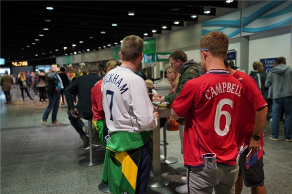 大量身穿英格蘭國家隊球衣的球迷已經在這里喝著啤酒吃著炸魚薯條。