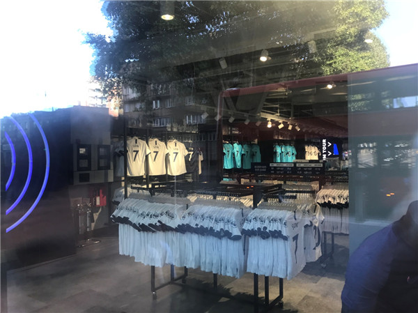 由于商店上午10點才開始營業,我們到的時候還是上午不到9點,所以只能在外拍攝一下,看大量韓國球王孫興慜的球衣。