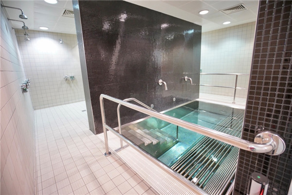 這是更衣室邊上的沖淋房,球員可以在這里獲得放松。