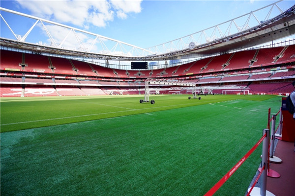 來到球場的第一感受就是草皮極其漂亮平整,從圖中可以看到有鋼架衡量帶著輪子的裝備,通常這些都是掛了特殊的太陽燈,來照射草皮,讓草皮有充足的陽光,得到較好的生長,草皮采用98%的真草和2%的假草混合,這種方式是經過研究后最佳的配比。可以說草皮的養護對于英國俱樂部來說最為要緊最為神圣。