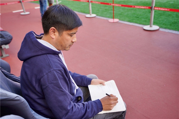 將來阿森納的主教練繆先生正在本子上畫著這場比賽的戰術布置。
