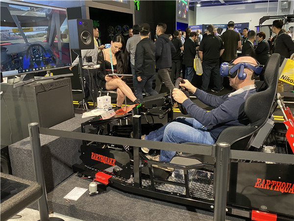 去年CES最大亮點的動感賽車游戲系統今年依然存在,大地震采用4D動感系統配上監聽揚聲器M-Power8和Supernova MKVI超低音。逼真的賽車模式,吸引了無數參觀者前來體驗。