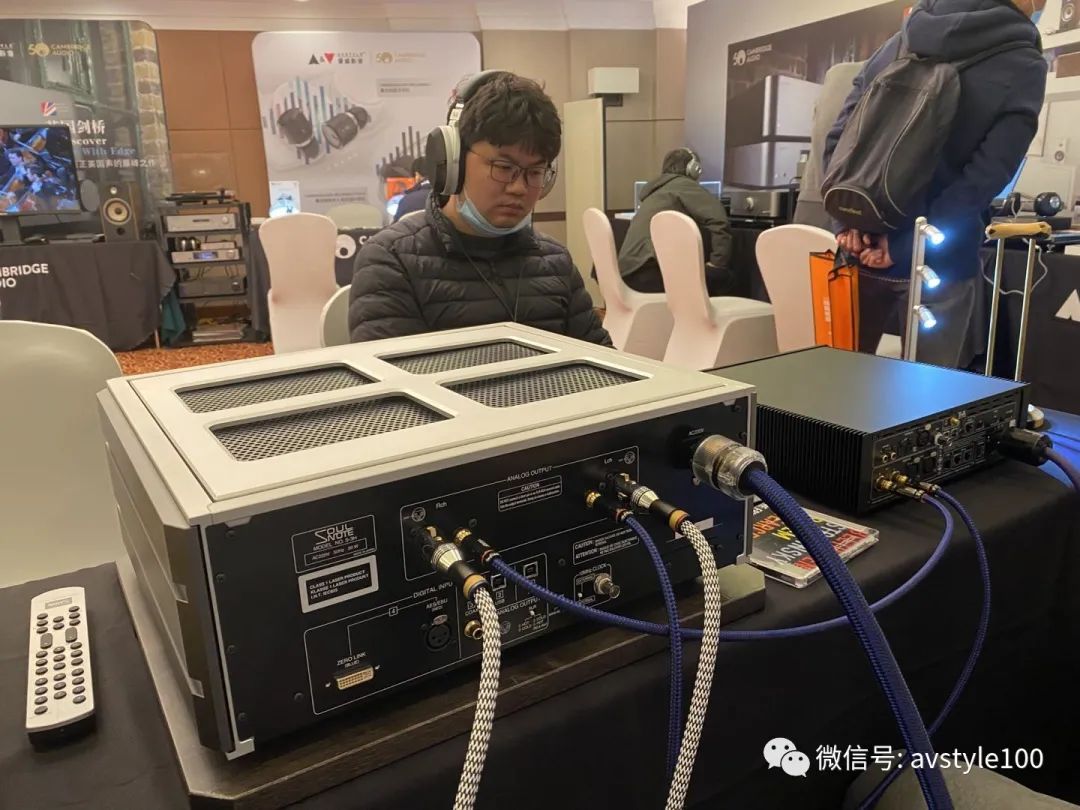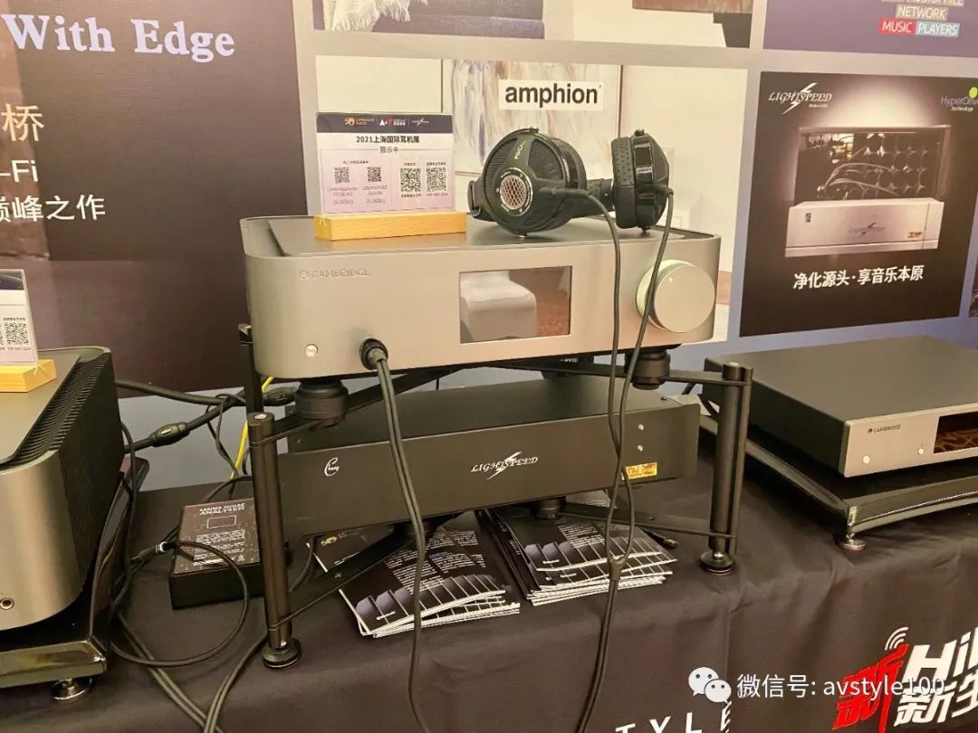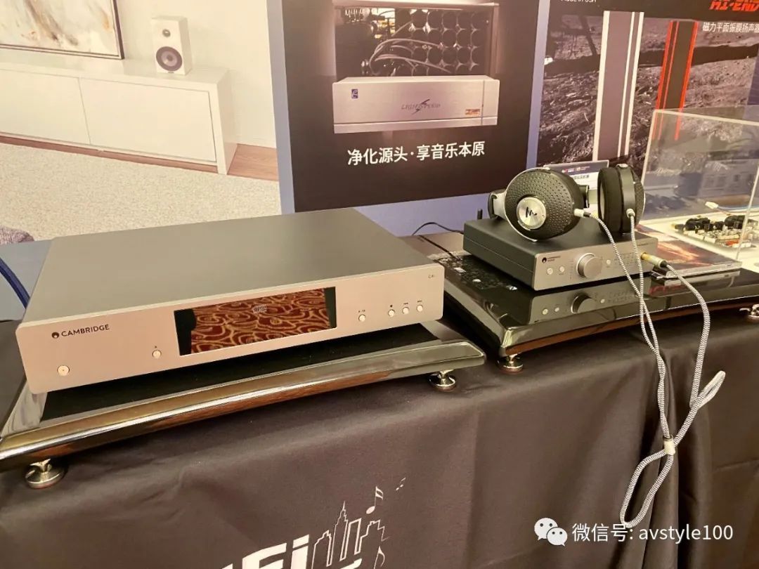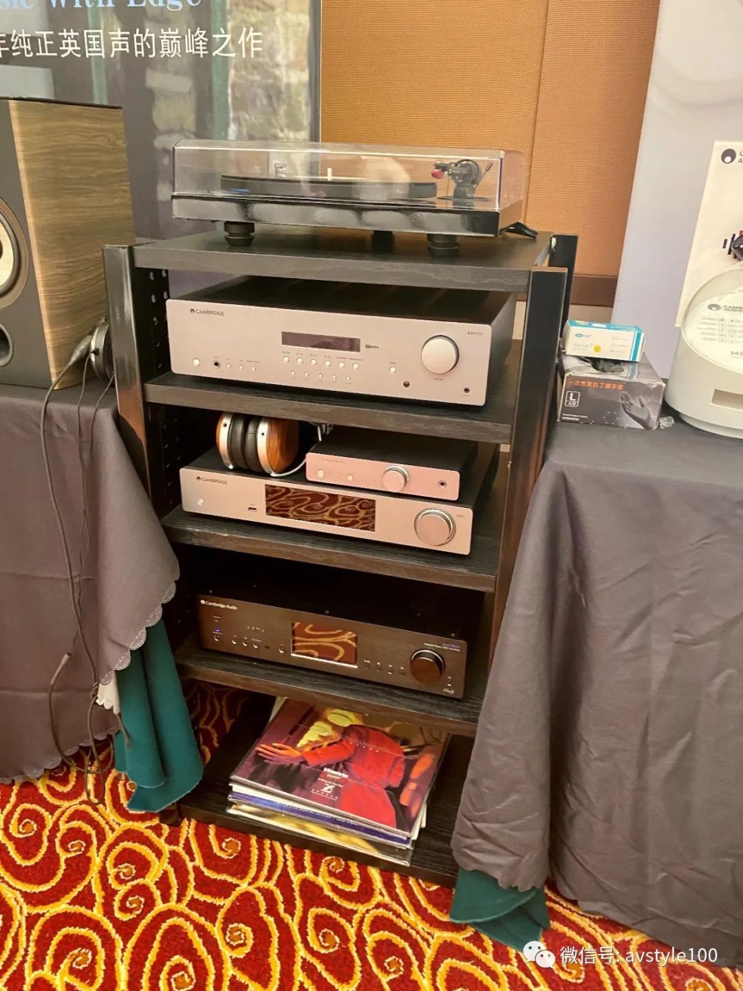 通過這個架子,除了和游戲機鏈接的AXR100綜合功放。還可以通過黑膠唱盤和劍橋唱放前級耳放鏈接在一起聽黑膠,另外還展出了英國劍橋兩臺特別熱門的數播。