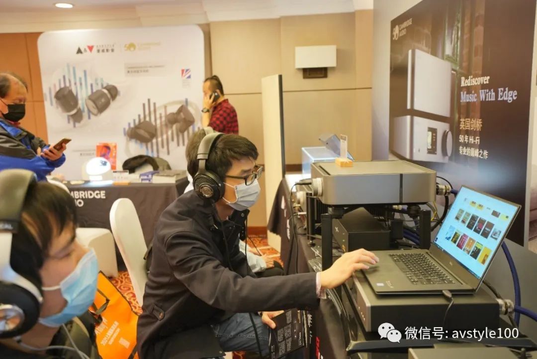 這是愛威影音的主展示面,主要展示了英國劍橋Cambridgeaudio的五十周年紀念版產品EDGE,這里搭配法國Focal勁浪的耳機,為愛好者們呈現三套精彩的組合。