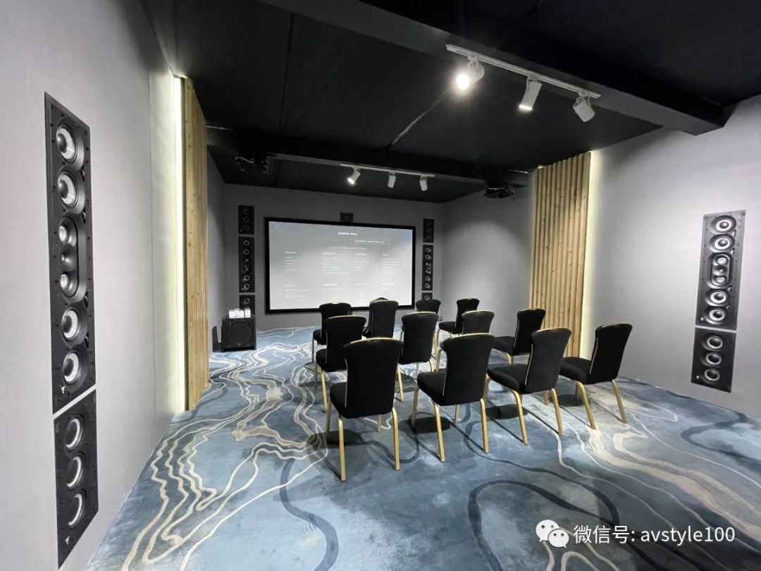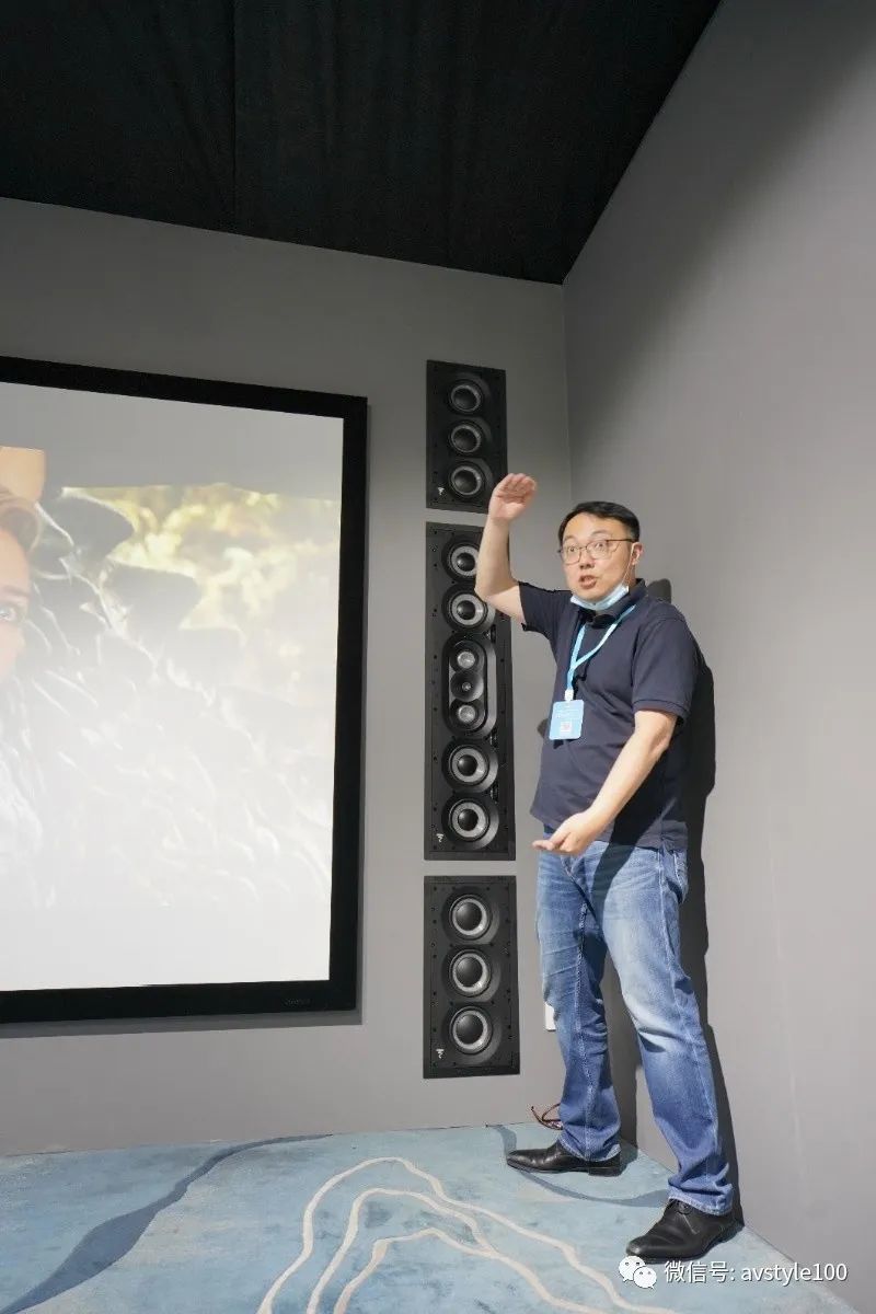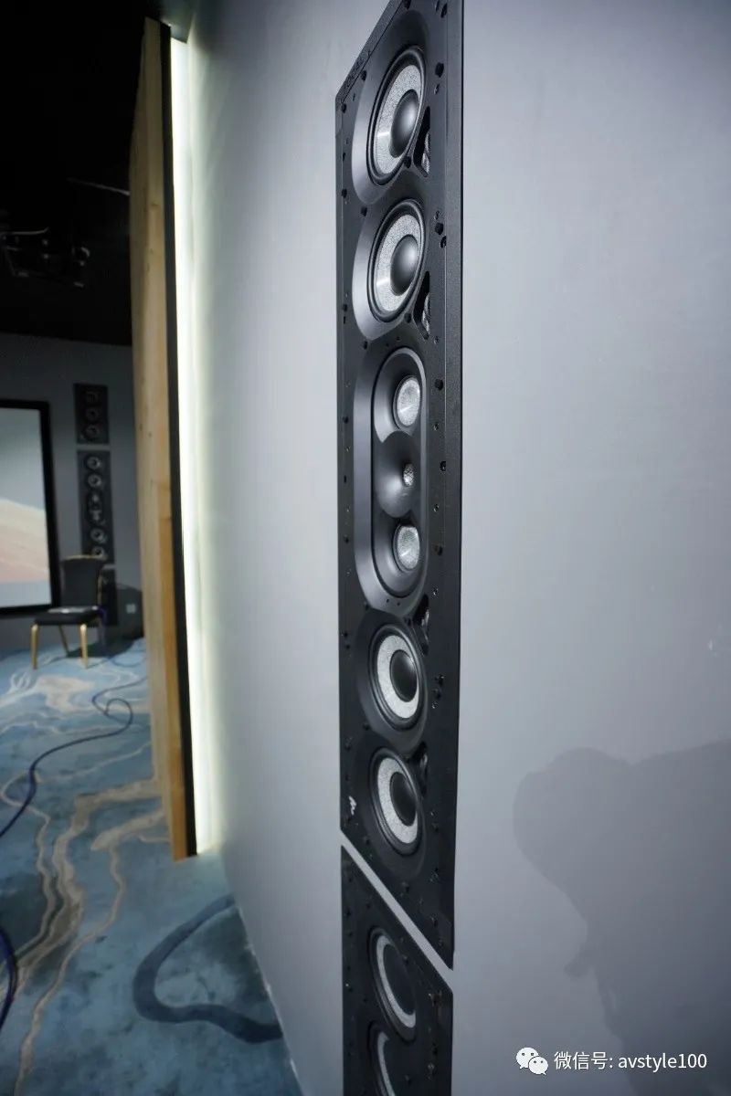 而在影院房間的外面我們也展出了整個(gè)入墻式烏托邦系列的7款喇叭
