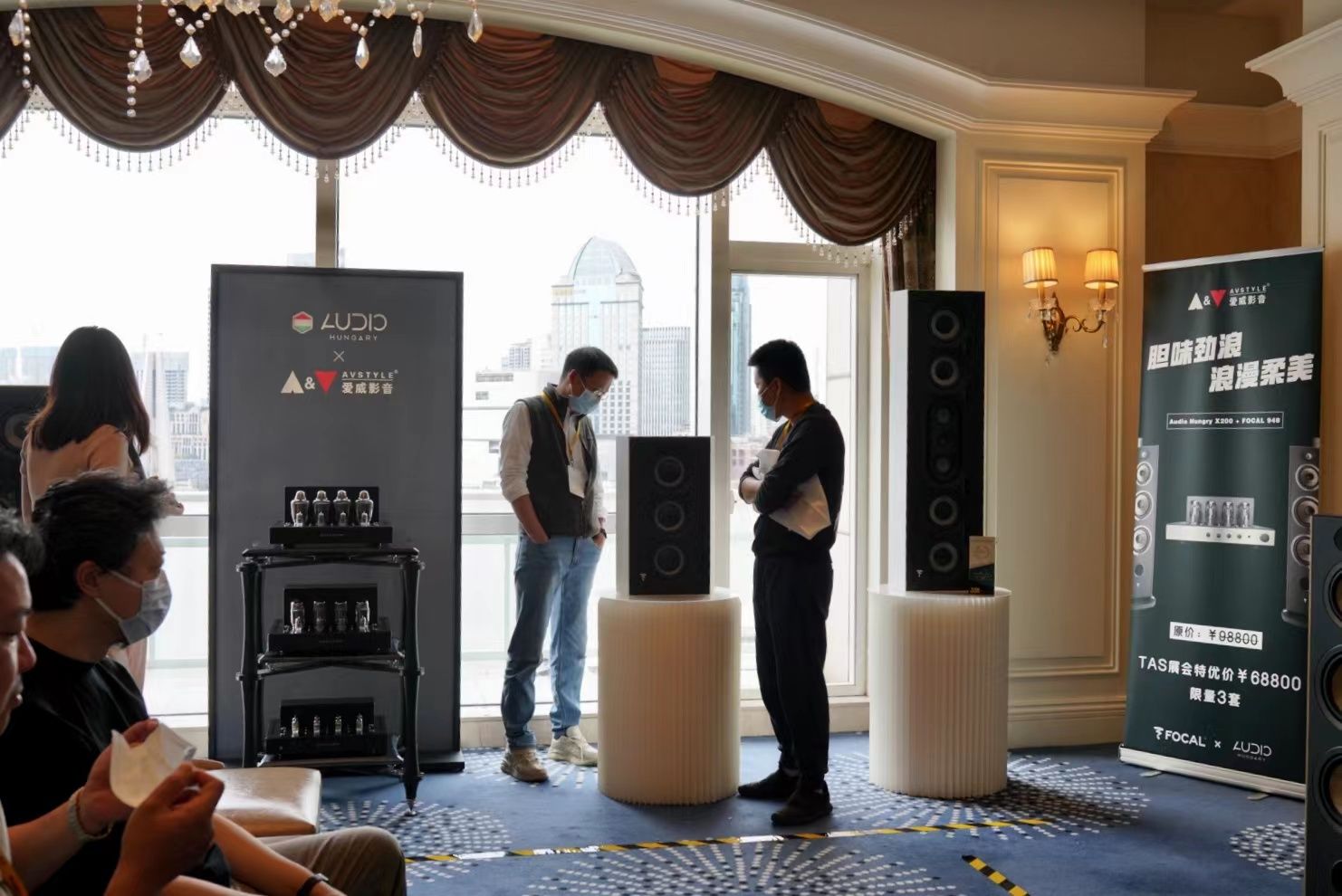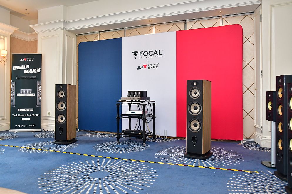 展廳正中央動態演示的是,Audio-Hungary匈牙利之聲 X200膽機與法國Focal勁浪 Aria 948落地箱的組合。這是面向中端Hi-Fi市場的套裝,老派的發燒友都知道,FOCAL勁浪這個品牌要出好聲音,搭配膽機就是非常合理的選擇。