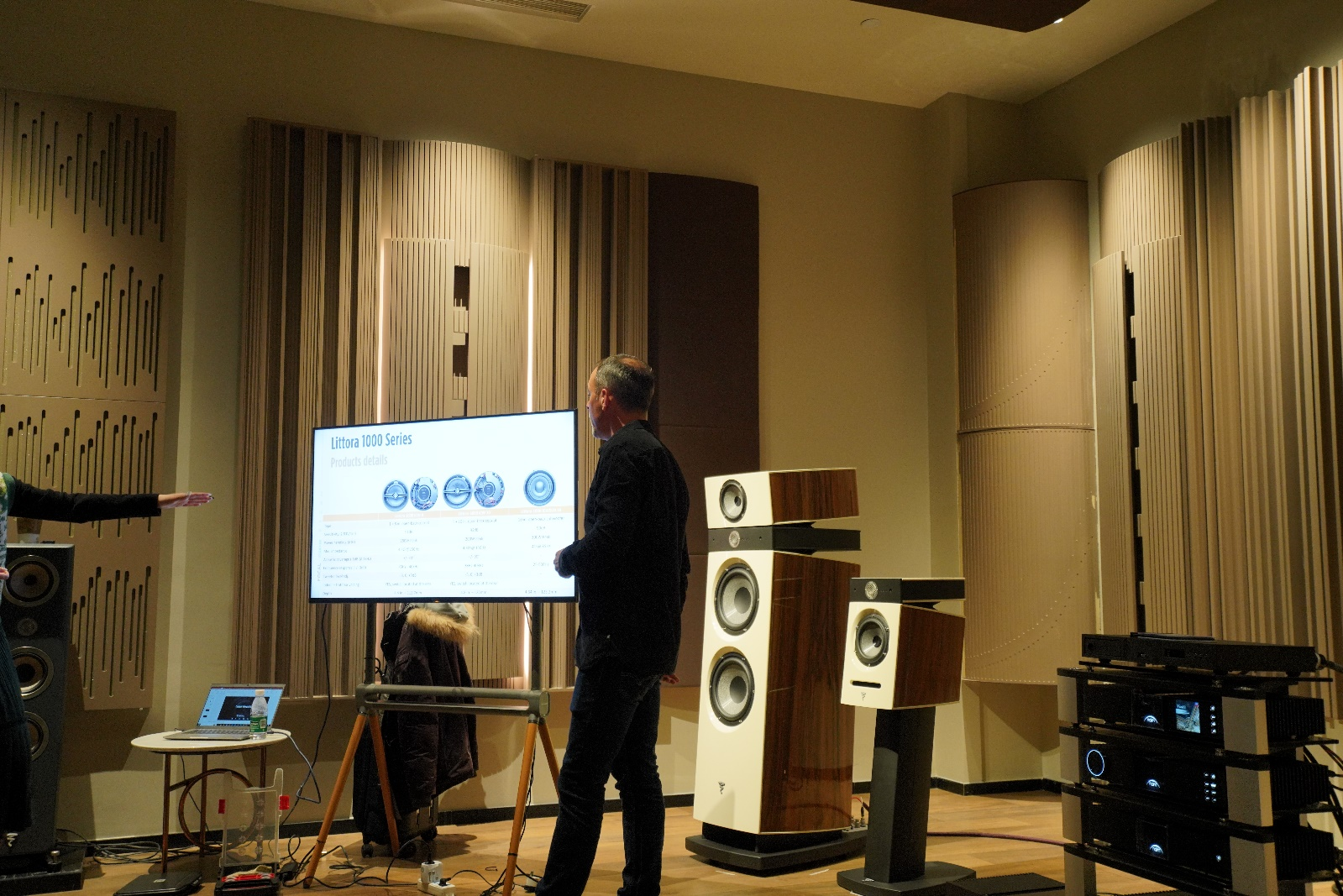 當天的最后,進入到最令人期待的時刻。Focal勁浪在2024年1月全新推出的EVO X進韻系列揚聲器。這個系列的前身是勁浪全球銷量最佳的900系列。新款在多個方面都獲得了提升。Nicolas先生詳細為大家講解了最新產品的技術特點和賣點。讓人對這個產品充滿期待。該產品從2024年3月中旬開始正式會在中國市場開售。相信是所有發燒友愛好者翹首以盼的精彩神器。