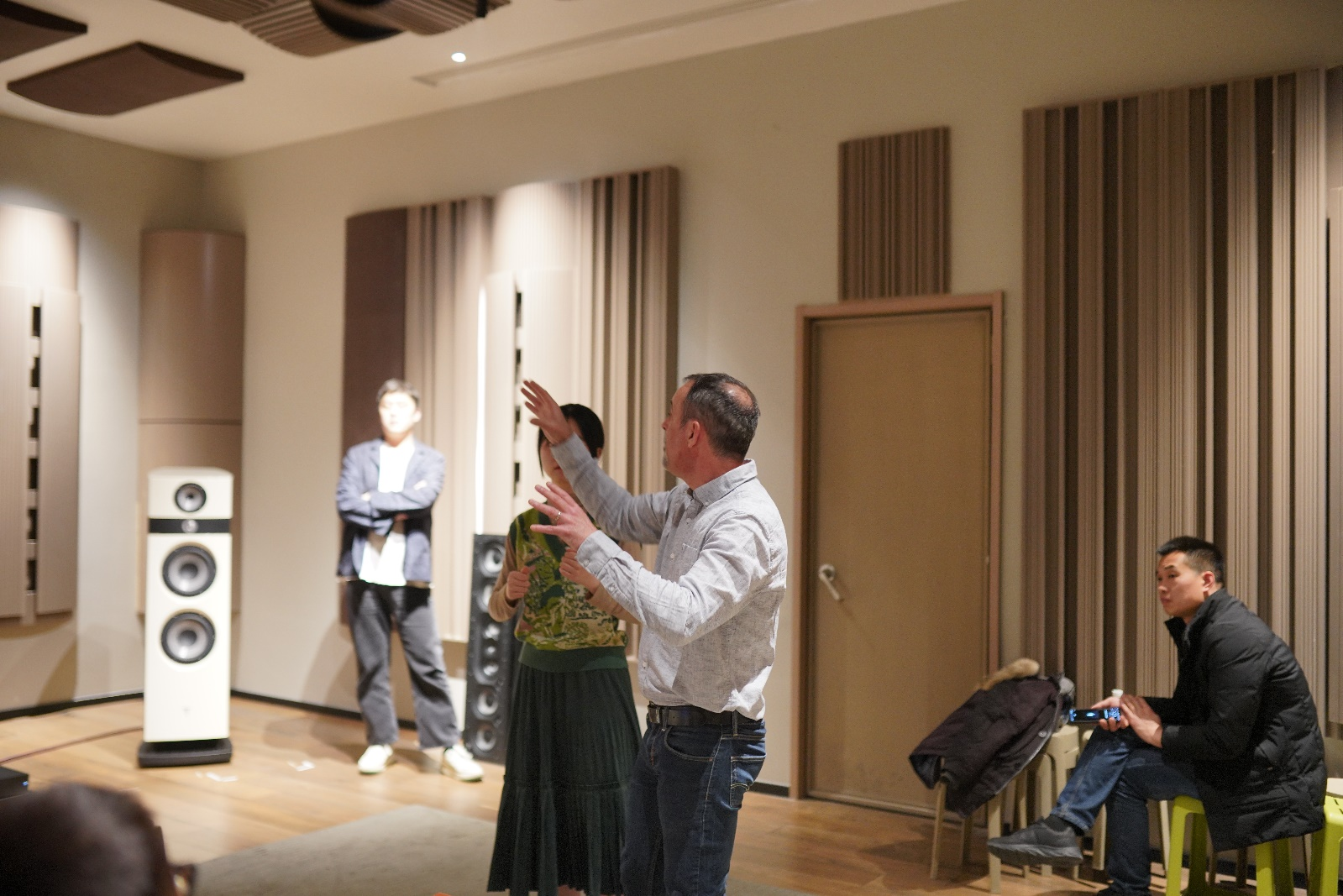 下午的時候所有的選員分成兩隊。分別在兩個不同的區域。根據Nicolas先生秘授的調試方法,一步一步地對揚聲器地擺位進行調整調試。在場的每個學員都認真嘗試了這套調音秘籍。經過這一個下午的實踐操作,再加上Nicolas先生時不時的指導和調整。都分別調整出了令人拍案叫絕的現場效果。