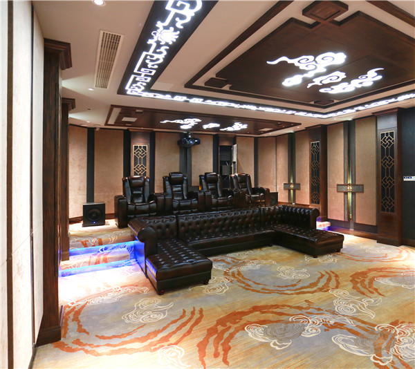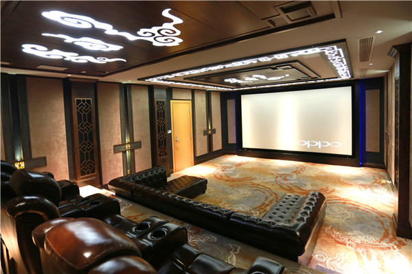 整體影院設計典雅、大氣,上下兩層階梯搭配兩排皮質沙發(fā)構成了明朗的雙層結構動線,中式祥云鏤空天花和暖色祥云地毯交相輝映,其格調立刻顯現(xiàn)出來。同時所有器材、軟裝搭配得當,在感官上也很大程度滿足了體驗者觀影時全方位的舒適度,如果您偏好于中式古典,這個案例將會是一個相當不錯的借鑒對象。