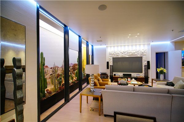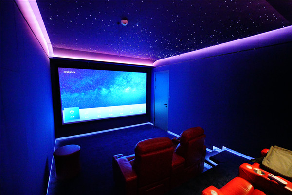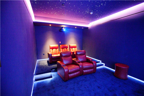 頂級的影音設備當然也要配備完美的室內風格,絢麗的燈光配合時尚的設計,營造出極具科技感的觀影環境,力爭營造出一個良好的觀影環境和美學效果。視聽室還進行了精密的聲學空間規劃、聲學設計裝修材料、舒適的觀影沙發等。