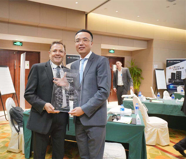 分享會現(xiàn)場Joseph專門為愛威影音頒發(fā)了“全球最佳合作伙伴”的獎牌。