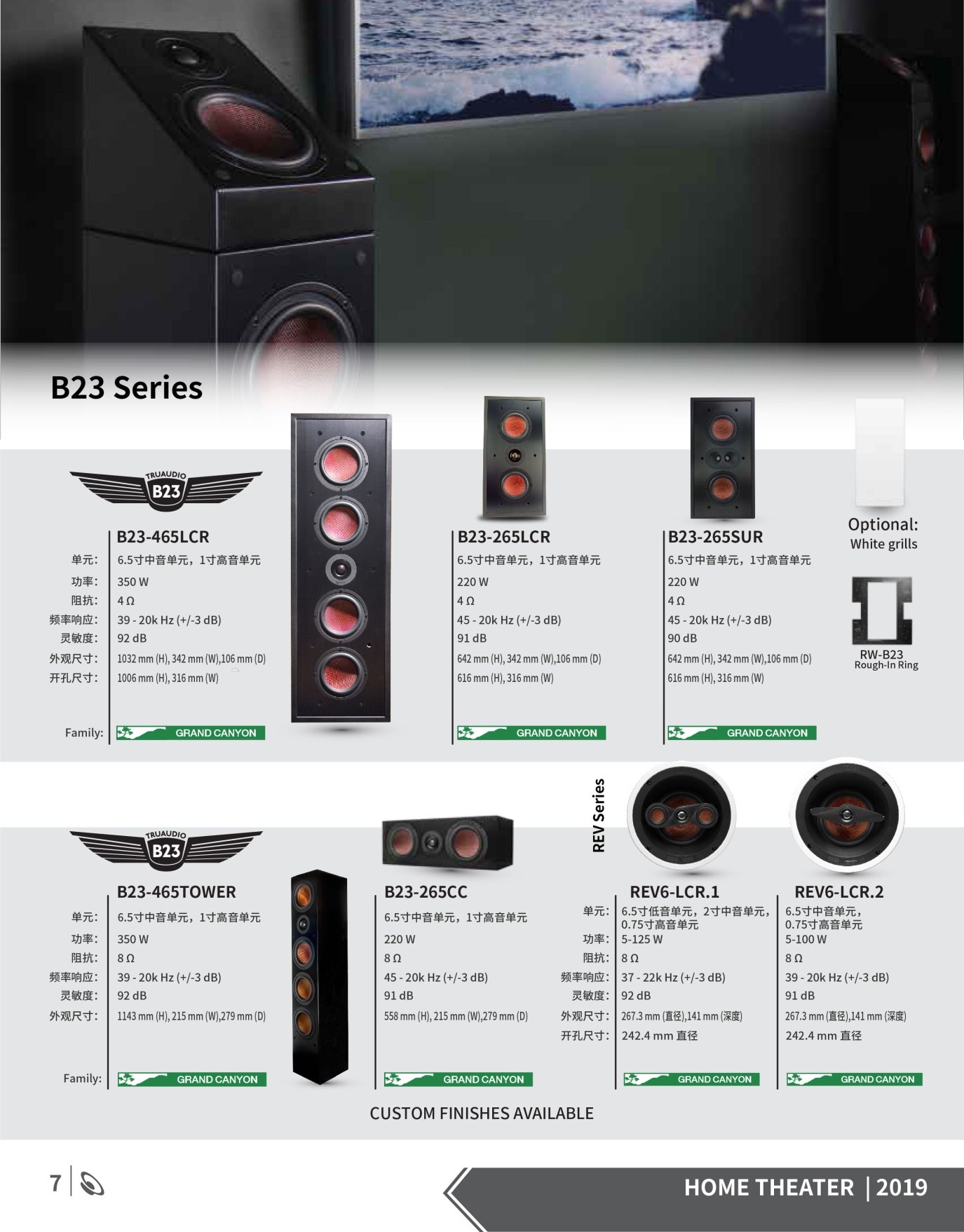 B23系列是最先進的嵌入式家庭影院揚聲器,可媲美任何箱體揚聲器。B23系列是專為影迷設計的。每一個型號都對表面進行電鍍處理,采用鋁板面板并且帶有適合每個型號的背箱,以確保精確的聲音控制和你所聽到過的最緊密的聲音。對于需要大量能量的家庭影院來說,B23令人瞠目結舌的表現會讓你肅然起敬。要創建杜比Atmos家庭影院,請將我們的REV6揚聲器添加到天花板中,感受圍繞您流動的強大、移動的音效。