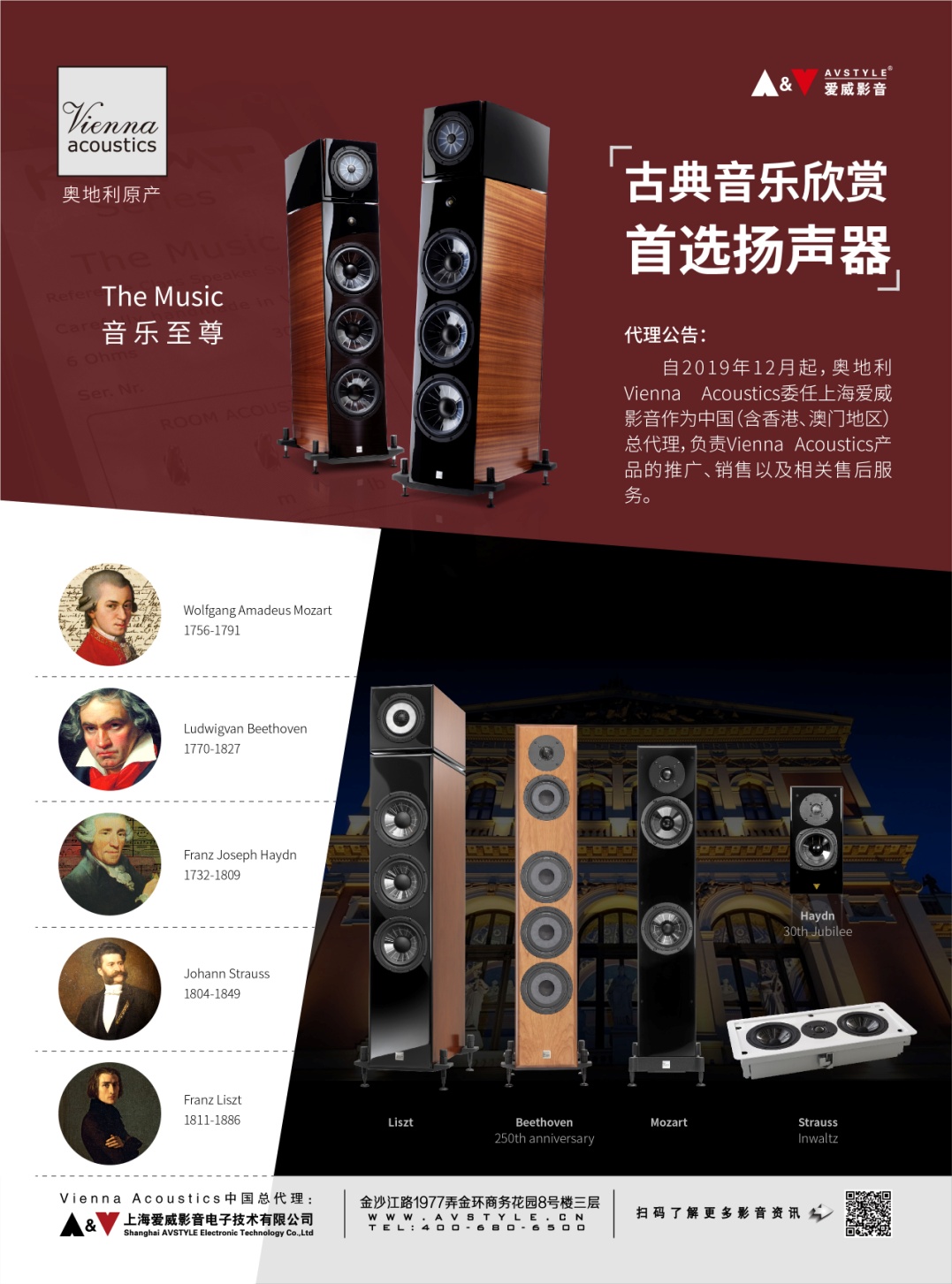 2019年12月奧地利“Vienna Acoustics維也納之聲”正式委任上海愛威影音電子技術(shù)有限公司作為中國(含香港、澳門地區(qū))總代理,負(fù)責(zé)“Vienna Acoustics維也納之聲”產(chǎn)品的推廣、銷售以及相關(guān)售后服務(wù)。此次授權(quán)標(biāo)志著愛威影音推廣“新HIFI 心體驗”全新理念,全力出擊音樂教育市場的戰(zhàn)略全面展開。
