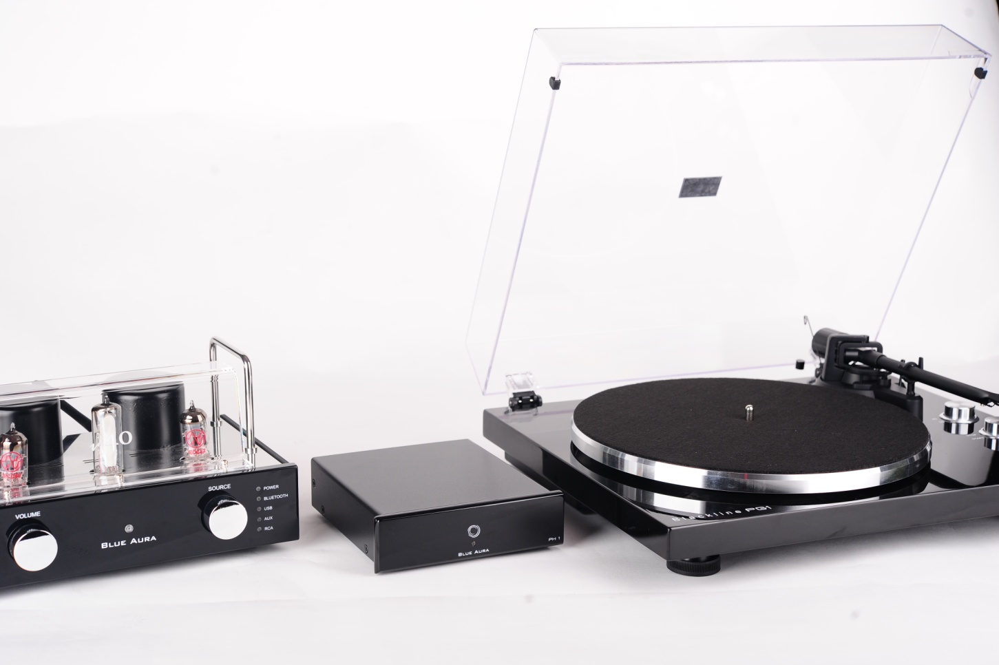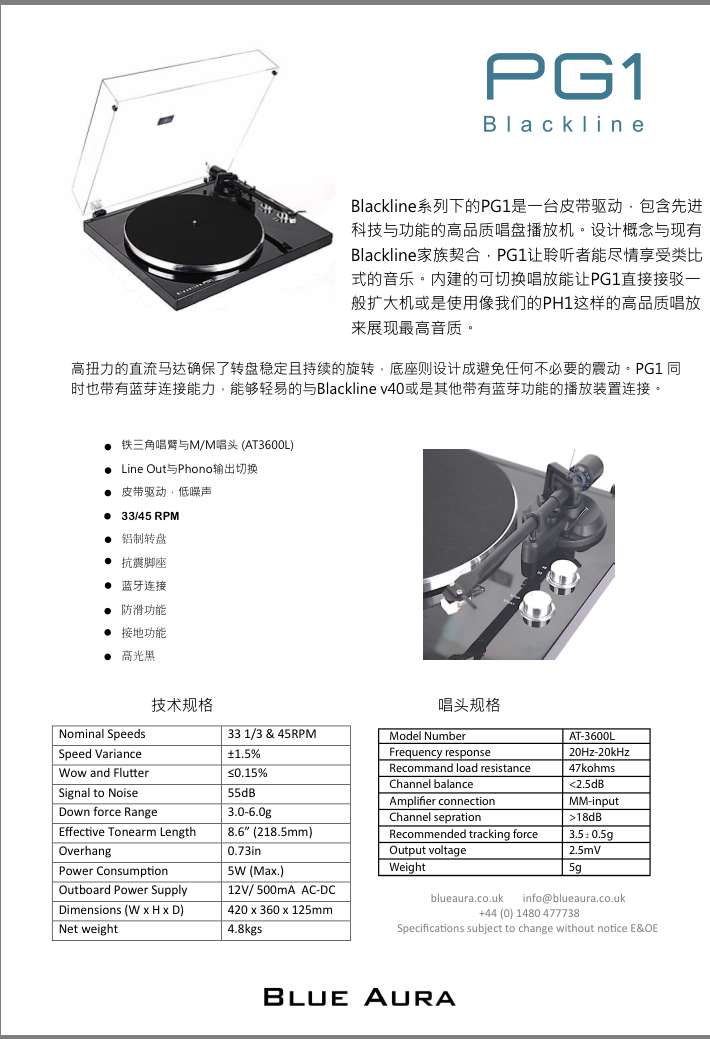 來自英國的藍色光輝BlueAura之前有各種無線揚聲器產(chǎn)品,還有藍牙膽機HIFI產(chǎn)品,此次全新推出的黑膠唱機PG-1,結合了原來品牌的各種技術基礎。PG-1唱機高度一體化,唱頭,唱臂,唱盤,唱放全部融合在一起,整機出售,省去消費者各種搭配的麻煩。當然如果消費者自己有高品質(zhì)唱放也可以不用PG-1內(nèi)置唱放,可以輸出接外置唱放。而且最最關鍵一點可以通過藍牙輸出,直接連接藍牙設備。這樣就可以搭配英國劍橋Cambridge Auido的無線藍牙音箱了!甚至還可以搭配英國劍橋的Melomenia1無線藍牙耳機來聽。