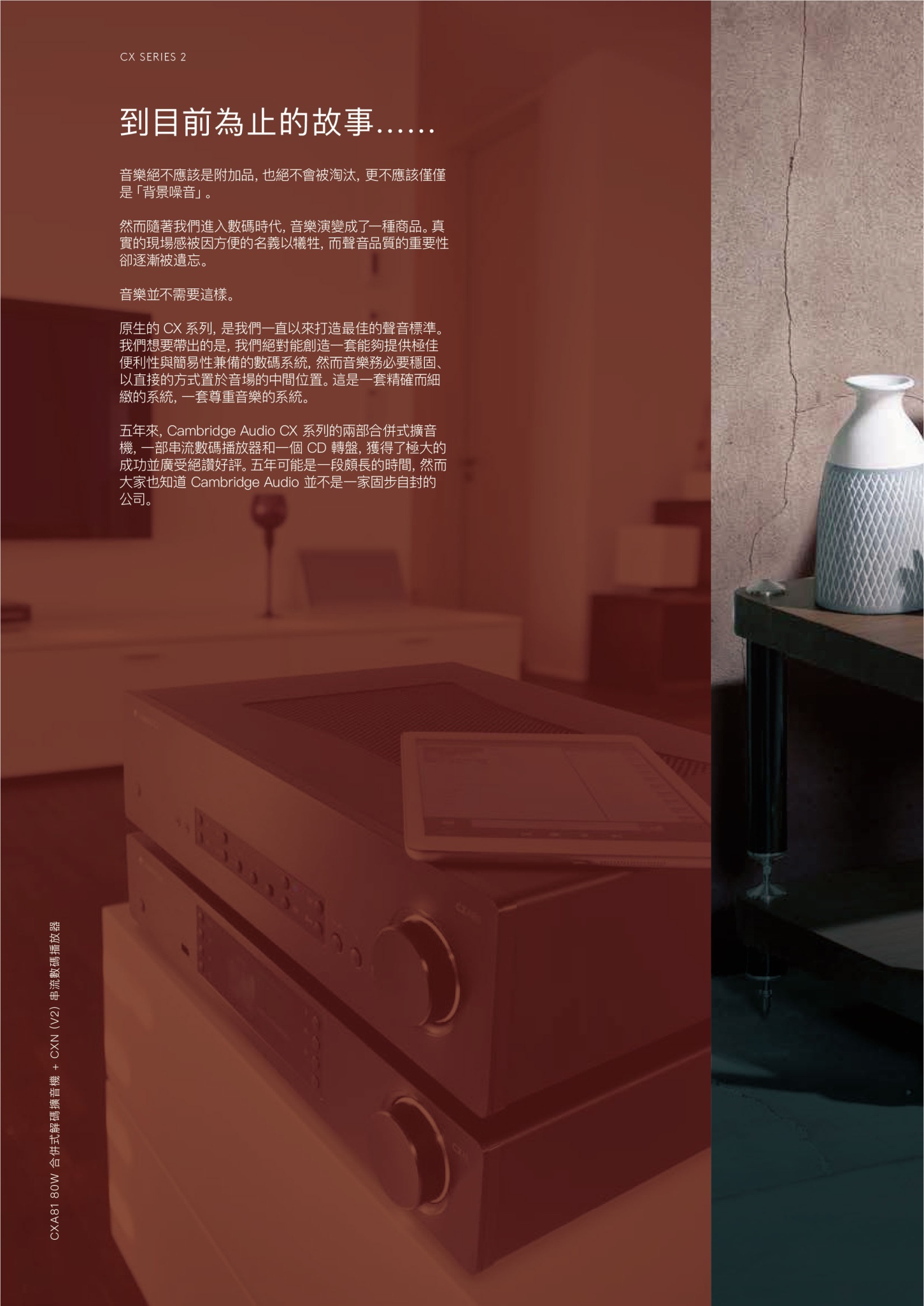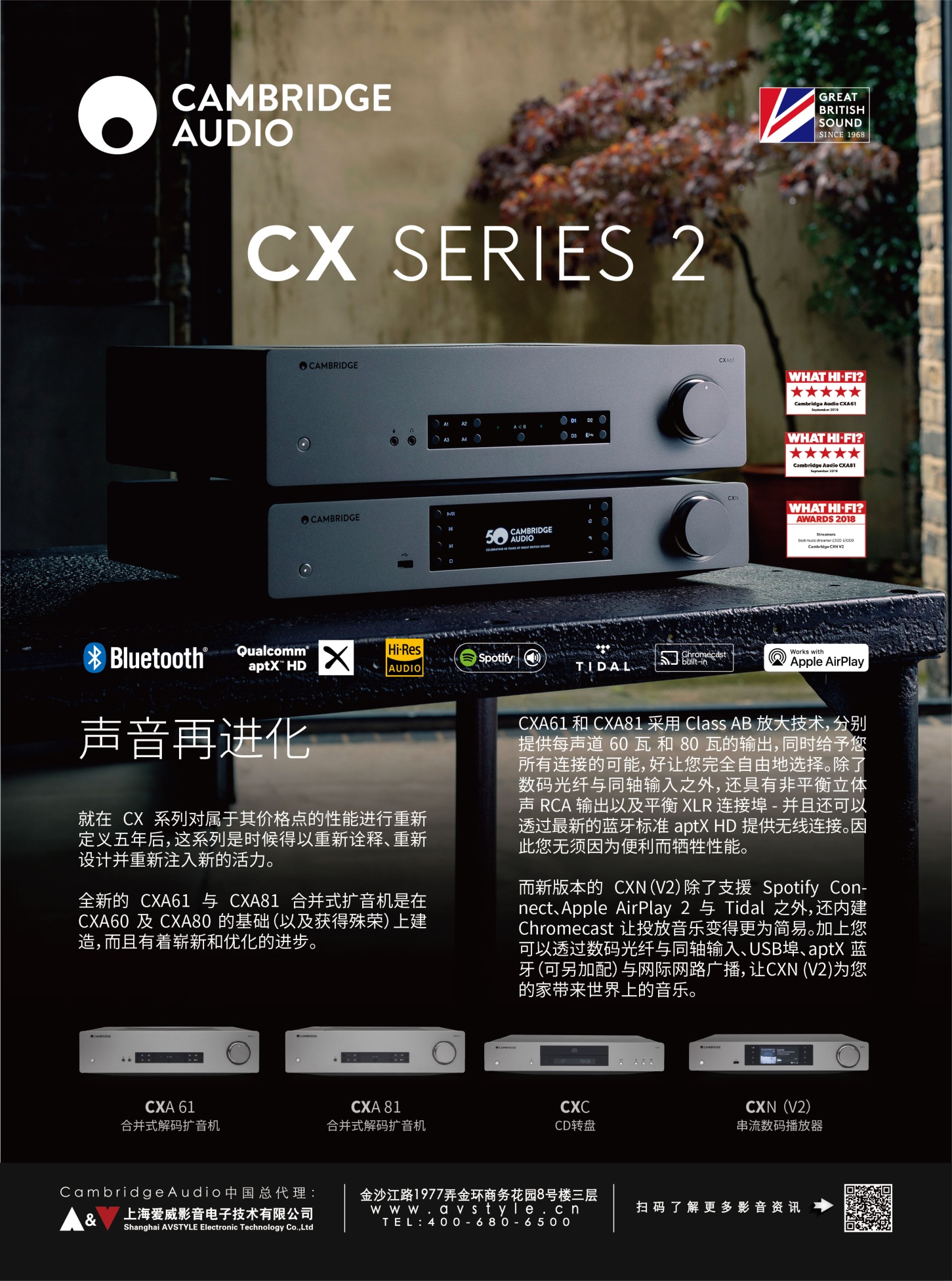 英國劍橋CX系列在5年前推出,就成為了英國最為暢銷的HIFI播放的設備。而在五年后的今天,在五十周年紀念版EDGE全新開發的平臺基礎上,英國劍橋隆重推出了全新的CX2系列,把聲音再進化!