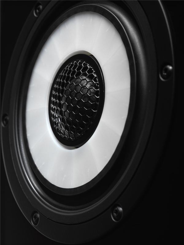 而這顆同軸單元的平面蛛網狀設計也是非同尋常。 采用幾種熱塑性聚合物以及玻璃纖維合成而得,提供了最大的剛度和質量比!本身很安靜,單元本身在響應頻率范圍內沒有諧振干擾,使得聲音沒有額外的音染,讓分頻器不需要notch type filters;分音器設計更簡單,聲音損失更少。