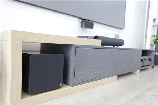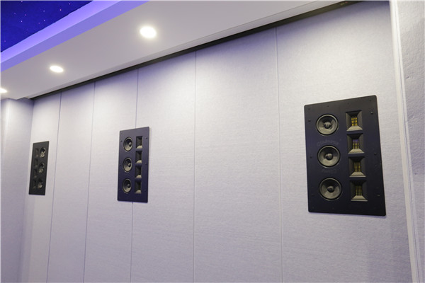 4只大地震EWS 800作為環繞隱藏在墻體中。EWS系列代表著Edgeless Series,此系列嵌入式喇叭最大的特色就是無邊框的設計,讓喇叭可以輕易的隱身于居家空間中。
