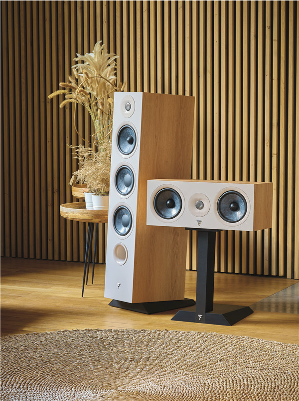 Chora整合了法國制造的音響單元,還擁有專屬的石板纖維音盆,這是FOCAL 40多年聲學研究的成果。每個細節都經過仔細斟酌,以滿足用戶對聲音再現和設計的預期。Chora 揚聲器系列利用為 Utopia III 系列開發的技術進步(如倒置圓頂高音喇叭),為中檔揚聲器和低音揚聲器采用了FOCAL獨特的技術:Slatefiber膜,一種由熱塑性聚合物制成的復合三明治錐體,具有未編織的再生碳纖維。它優異的"Ardoise"效果使它能夠產生更大的阻尼、剛性和輕度:一個好的揚聲器。因此,在提供軟針的TNF鋁/鎂高頻揚聲器的旁邊,Woofers slatefeber提供重型鉸鏈和精密介質。最后,得益于揚聲器支架的傾斜,"時間一致性"可以提供最佳的聲音場景,并更加集中于聽眾。