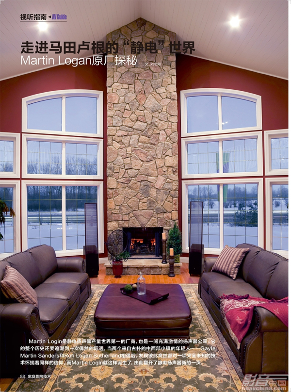 《家庭影院技術(shù)》4月刊,報道介紹“走進MartinLogan的靜電世界原廠探秘”。在報道中對MartinLogan揚聲器的歷史和生產(chǎn)設(shè)計過程進行了詳細介紹。